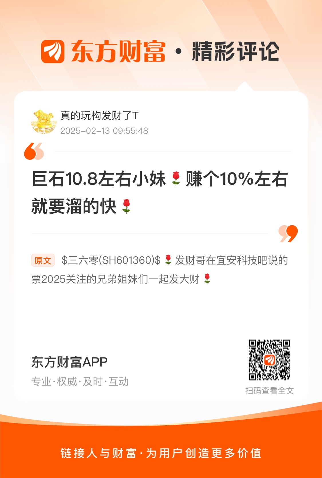 温馨提示: 1.根据《证券法》规定,禁止编造、传播虚假信息或者误导性信息,扰乱证券市场;2.用户在本社区发表的所有资料、言论等仅代表个人观点,与本网站立场无关,不对您构成任何投资建议。用户应基于自己的独立判断,自行决定证券投资并承担相应风险。《东方财富社区管理规定》
