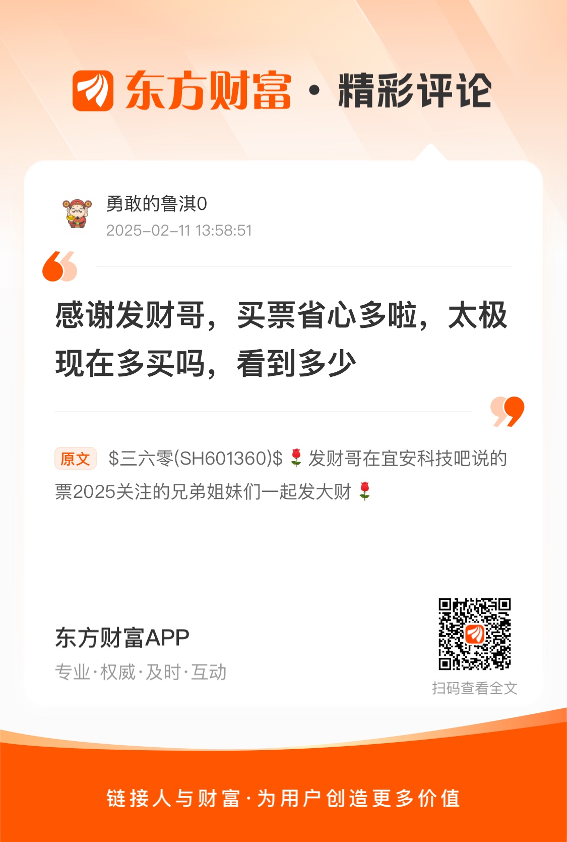 $三六零(SH601360)$  发财哥在宜安科技吧说的票2025关注的兄弟姐妹们一起发大财