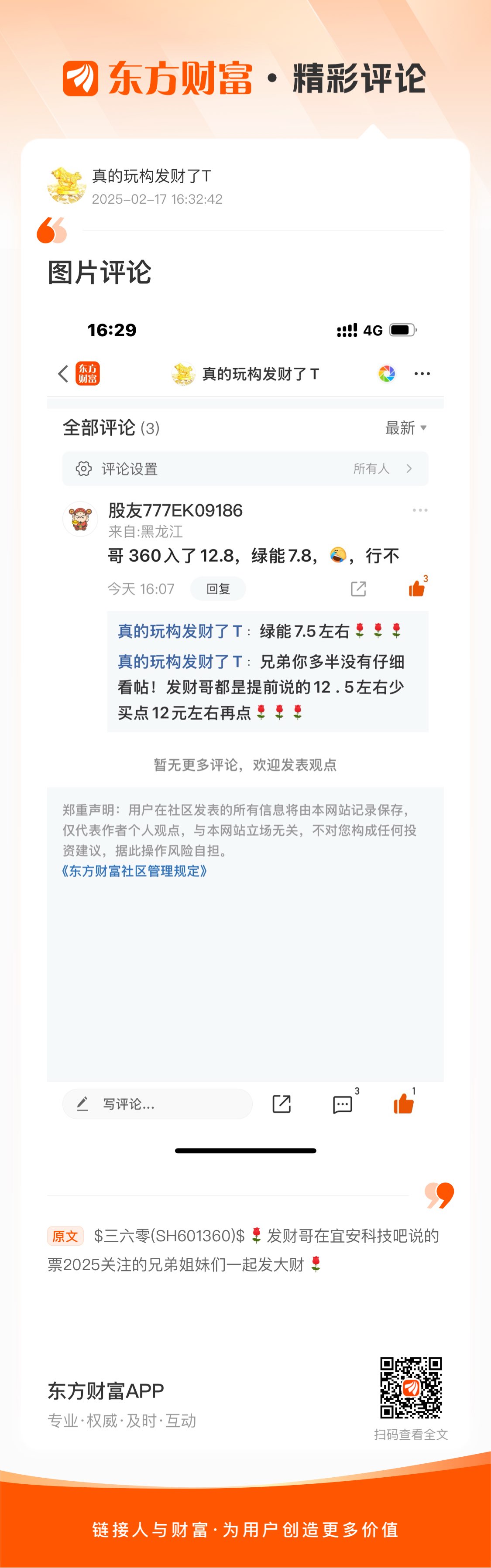 $三六零(SH601360)$  发财哥在宜安科技吧说的票2025关注的兄弟姐妹们一起发大财