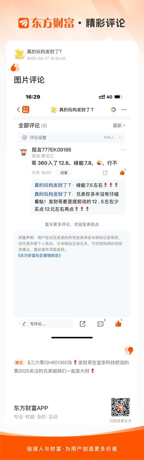温馨提示: 1.根据《证券法》规定,禁止编造、传播虚假信息或者误导性信息,扰乱证券市场;2.用户在本社区发表的所有资料、言论等仅代表个人观点,与本网站立场无关,不对您构成任何投资建议。用户应基于自己的独立判断,自行决定证券投资并承担相应风险。《东方财富社区管理规定》