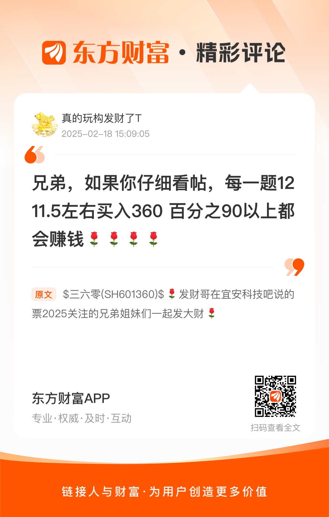 $三六零(SH601360)$  发财哥在宜安科技吧说的票2025关注的兄弟姐妹们一起发大财