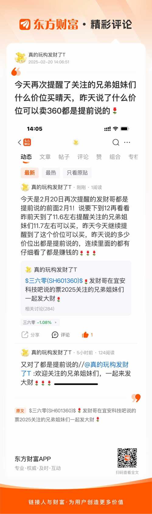 $三六零(SH601360)$  发财哥在宜安科技吧说的票2025关注的兄弟姐妹们一起发大财