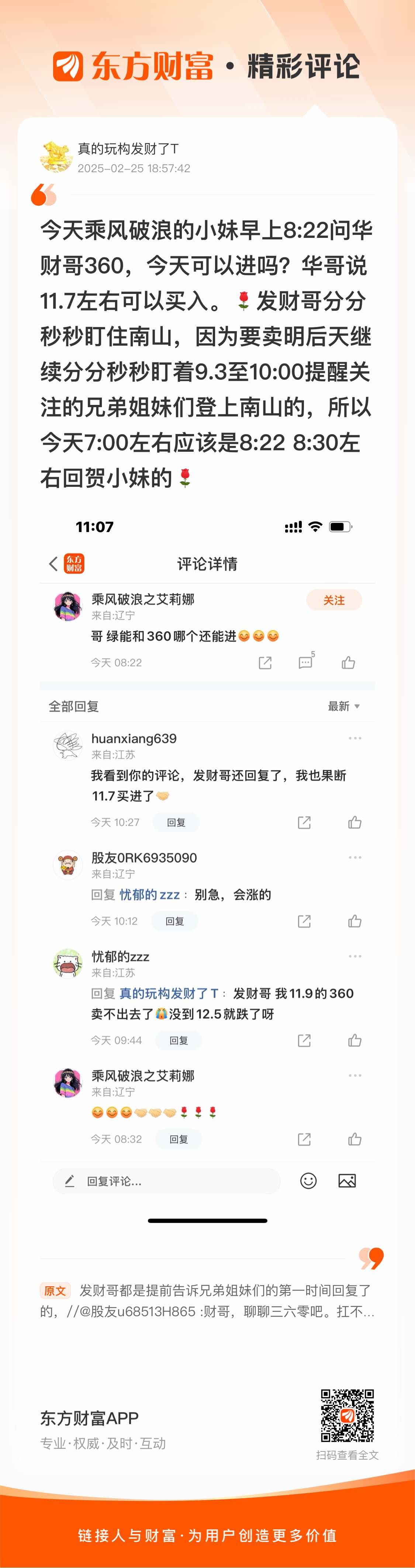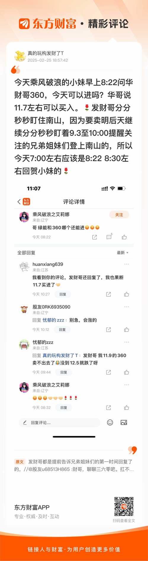 又对了//@真的玩构发财了T : 今天乘风破浪的小妹早上8:22问华财哥360,今天可以进吗?华哥说11.7左右可以买入。