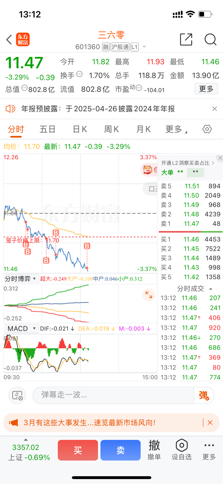 $三六零(SH601360)$ 最后一万块钱加进去了,你看着办吧