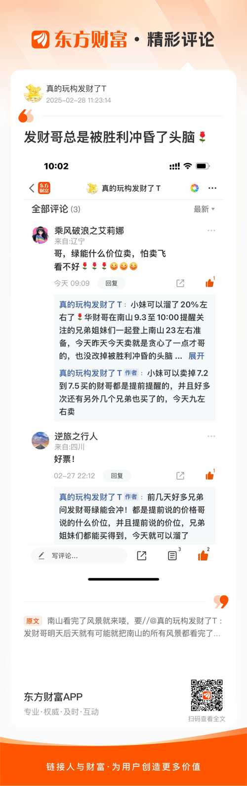 温馨提示: 1.根据《证券法》规定,禁止编造、传播虚假信息或者误导性信息,扰乱证券市场;2.用户在本社区发表的所有资料、言论等仅代表个人观点,与本网站立场无关,不对您构成任何投资建议。用户应基于自己的独立判断,自行决定证券投资并承担相应风险。《东方财富社区管理规定》