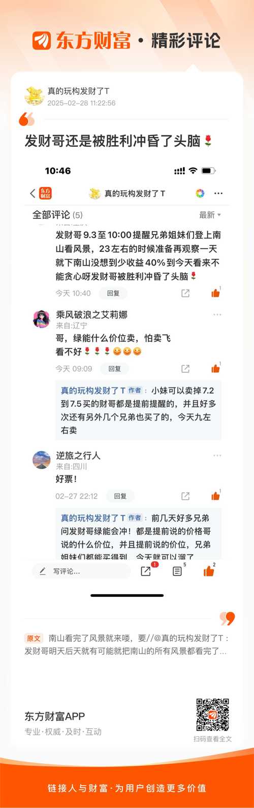 温馨提示: 1.根据《证券法》规定,禁止编造、传播虚假信息或者误导性信息,扰乱证券市场;2.用户在本社区发表的所有资料、言论等仅代表个人观点,与本网站立场无关,不对您构成任何投资建议。用户应基于自己的独立判断,自行决定证券投资并承担相应风险。《东方财富社区管理规定》