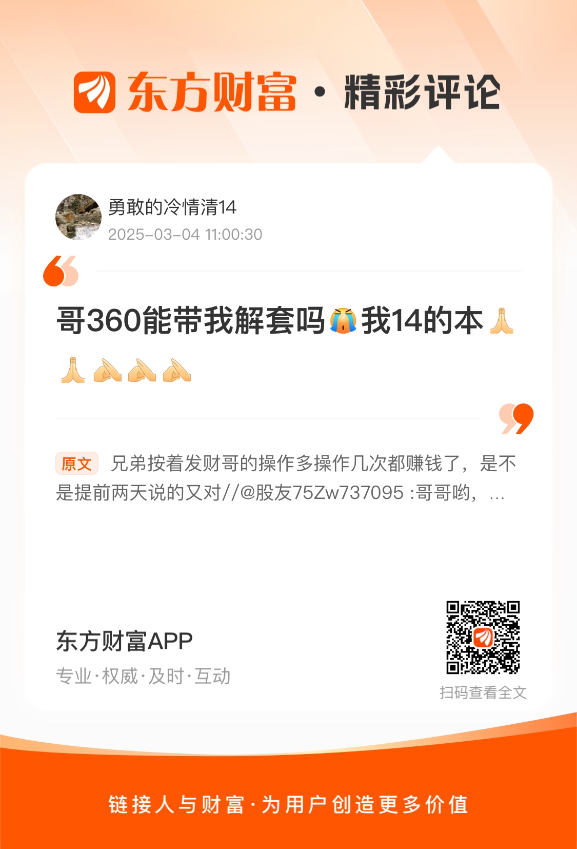 温馨提示: 1.根据《证券法》规定,禁止编造、传播虚假信息或者误导性信息,扰乱证券市场;2.用户在本社区发表的所有资料、言论等仅代表个人观点,与本网站立场无关,不对您构成任何投资建议。用户应基于自己的独立判断,自行决定证券投资并承担相应风险。《东方财富社区管理规定》