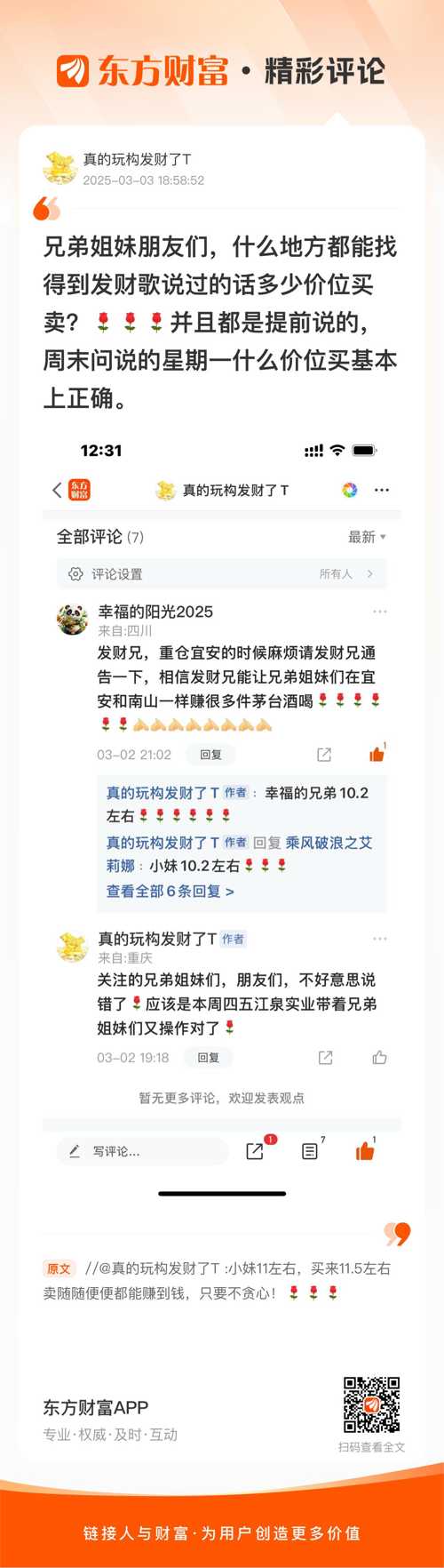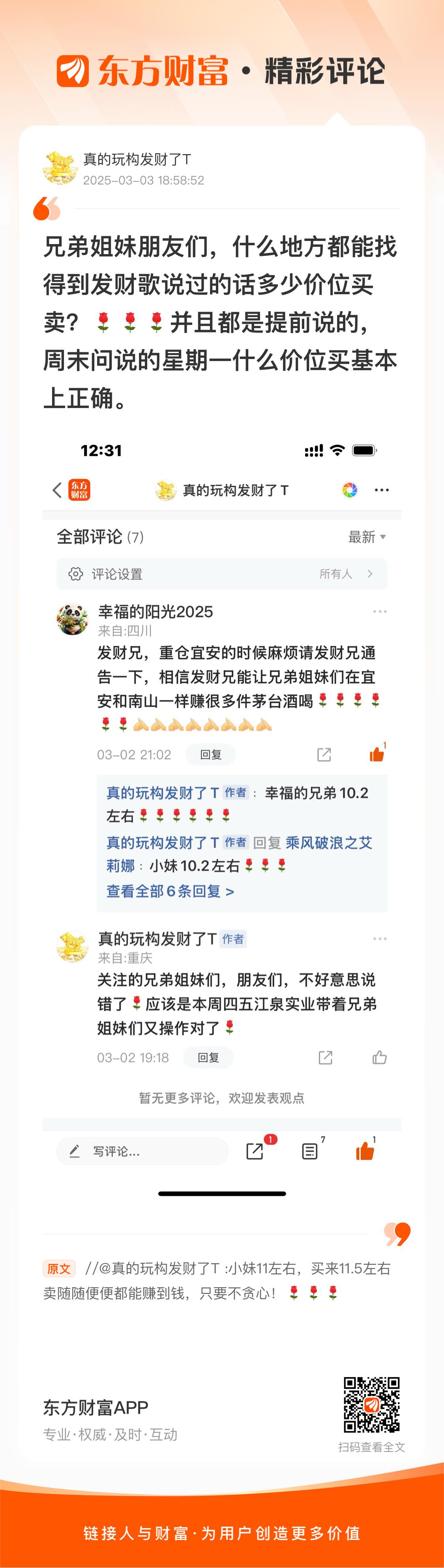 温馨提示: 1.根据《证券法》规定,禁止编造、传播虚假信息或者误导性信息,扰乱证券市场;2.用户在本社区发表的所有资料、言论等仅代表个人观点,与本网站立场无关,不对您构成任何投资建议。用户应基于自己的独立判断,自行决定证券投资并承担相应风险。《东方财富社区管理规定》