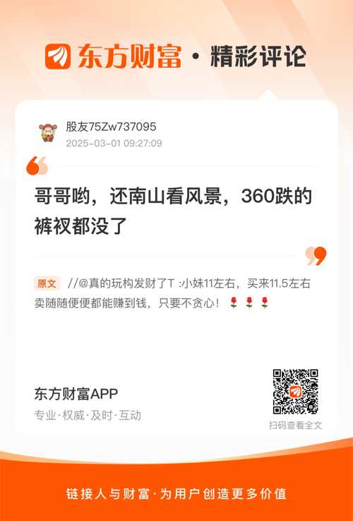 温馨提示: 1.根据《证券法》规定,禁止编造、传播虚假信息或者误导性信息,扰乱证券市场;2.用户在本社区发表的所有资料、言论等仅代表个人观点,与本网站立场无关,不对您构成任何投资建议。用户应基于自己的独立判断,自行决定证券投资并承担相应风险。《东方财富社区管理规定》