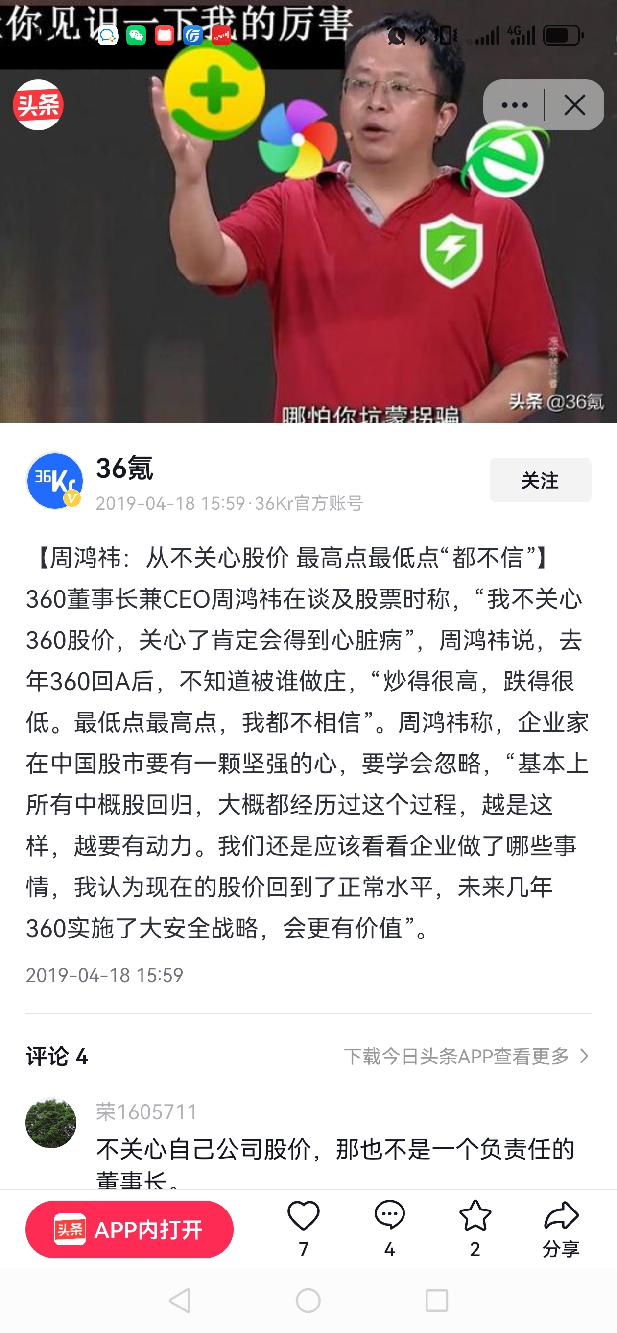 $三六零(SH601360)$ 19。年股价25块说合理估值,你自己清仓式减持,跌倒现在p都不放一个