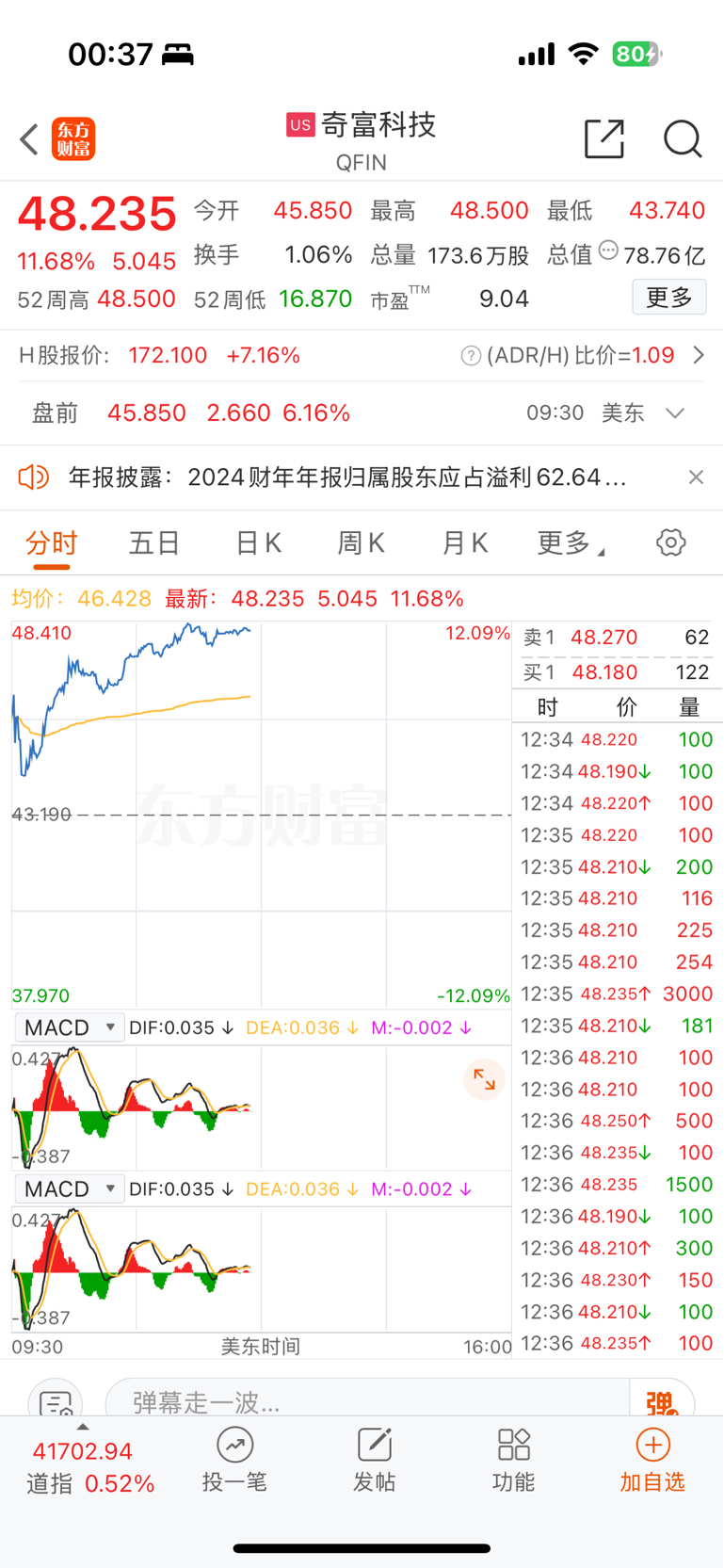 $三六零(SH601360)$ 美股涨幅明显,预示3/18跟近?