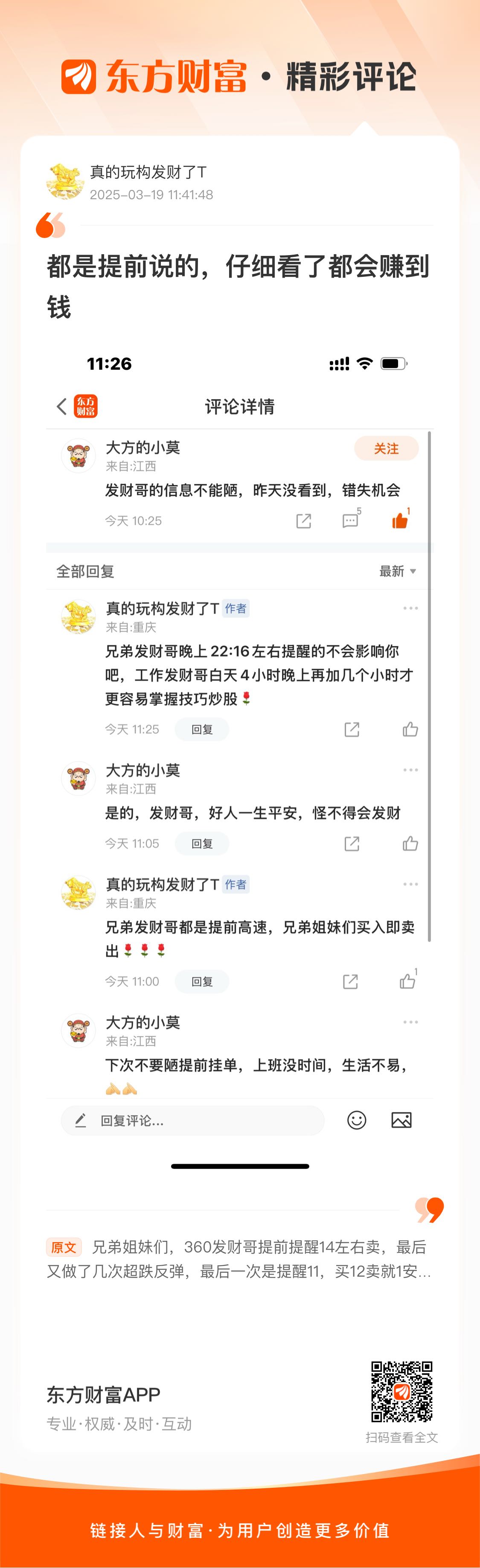 兄弟姐妹们,360发财哥提前提醒14左右卖,最后又做了几次超跌反弹,最后一次是提醒11,买12卖就1安去了300328后就到太极实业里面去了