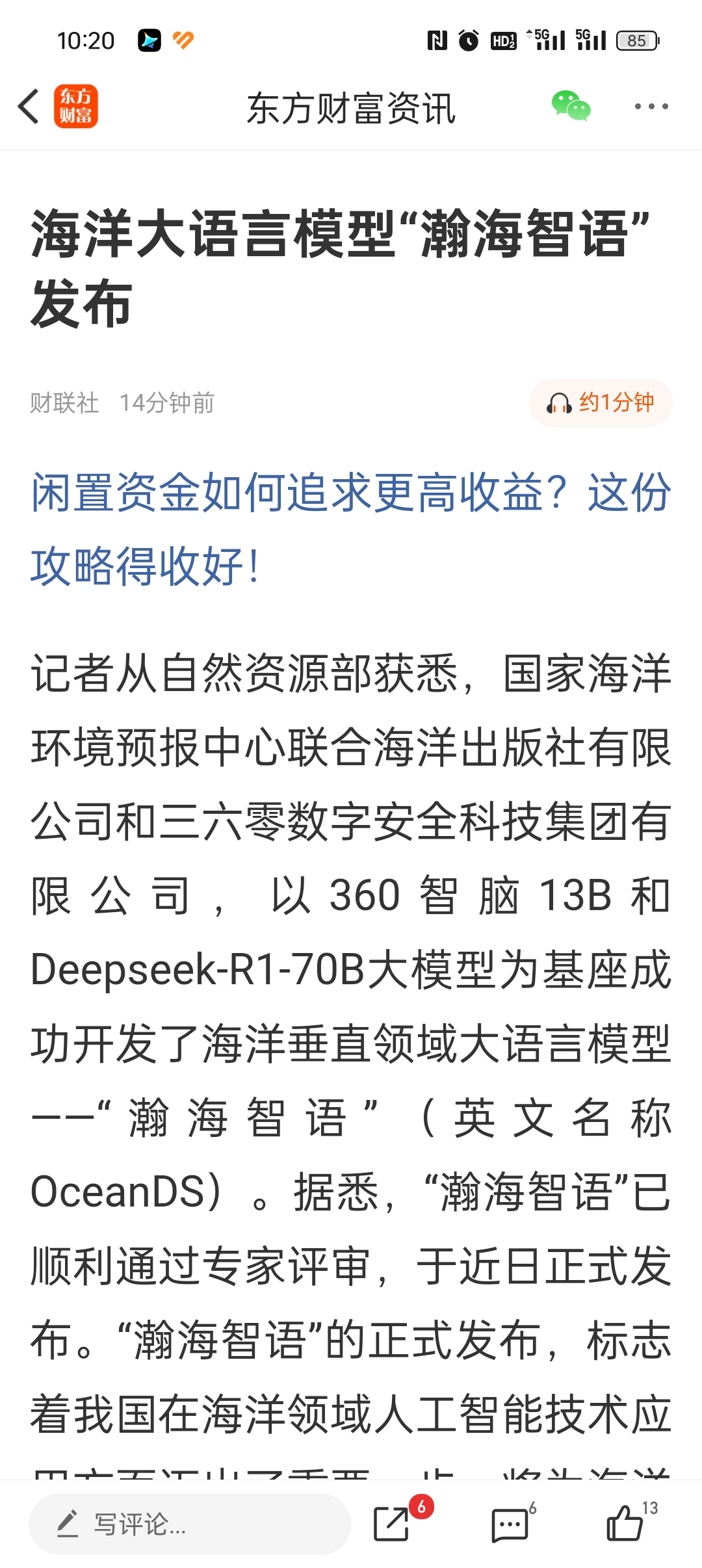 $三六零(SH601360)$ 海洋经济大模型就拉两个点?