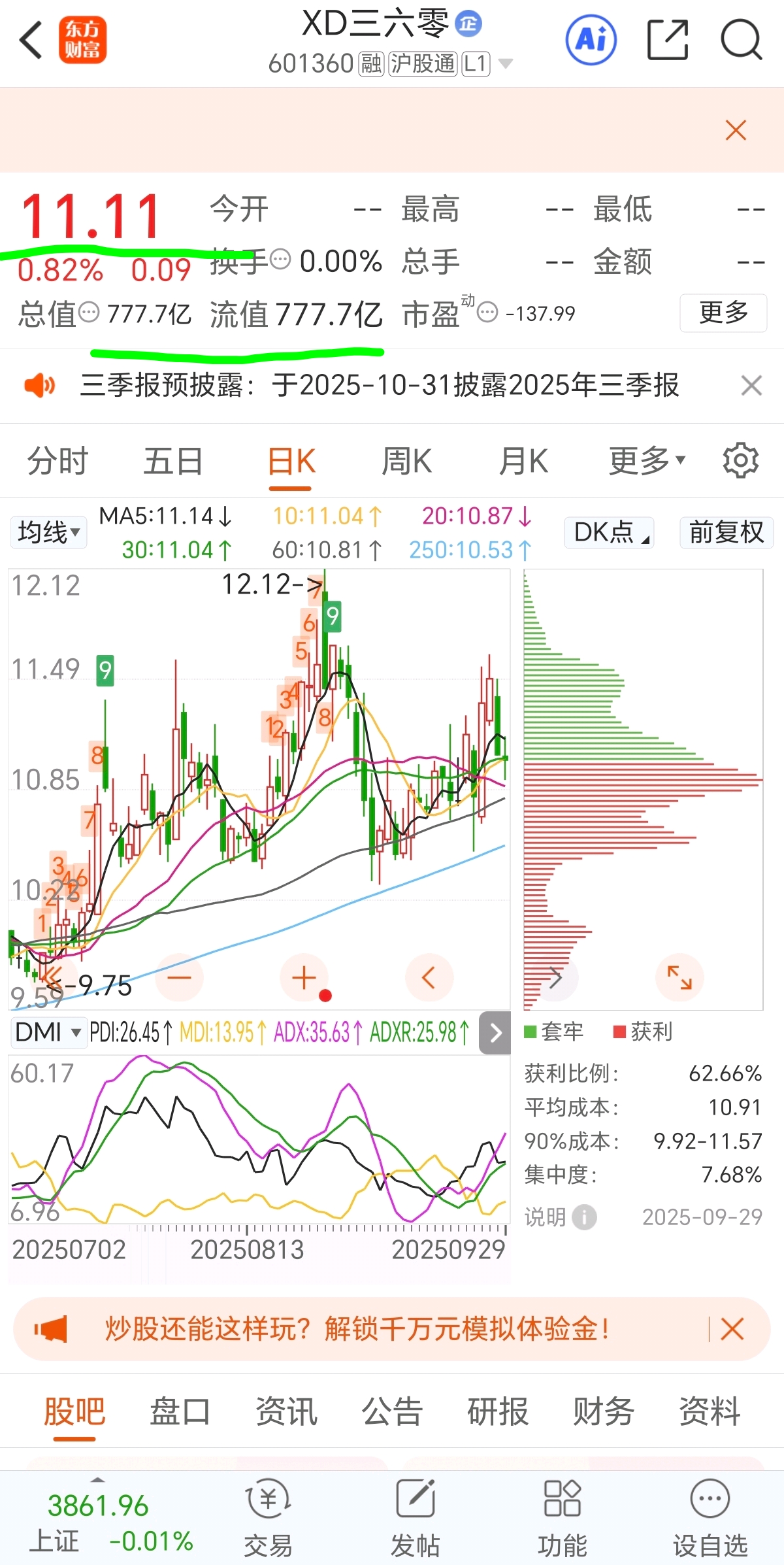 $XD三六零(SH601360)$ 11.11 777.7亿主力把控数字真是牛。