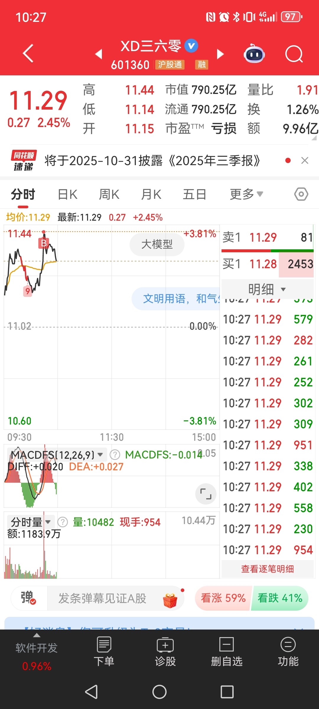 $XD三六零(SH601360)$ 我的。又买崩一个