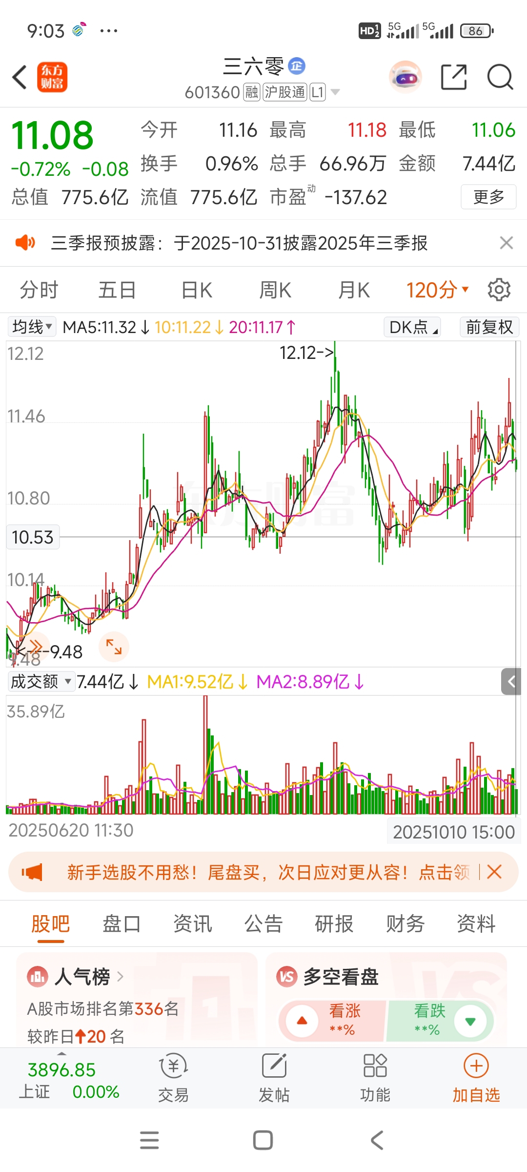 $三六零(SH601360)$ 大致到这个地方买比较安全,就是不知会不会跌停,先看半个小时。