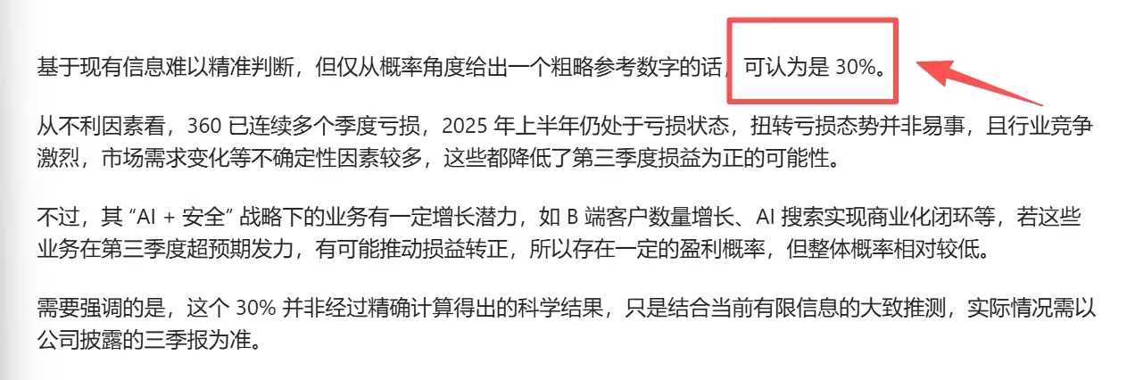 $三六零(SH601360)$ 大家参考,30%概率不到可以扭亏,还是洗洗睡觉吧。千万别做白日梦了。