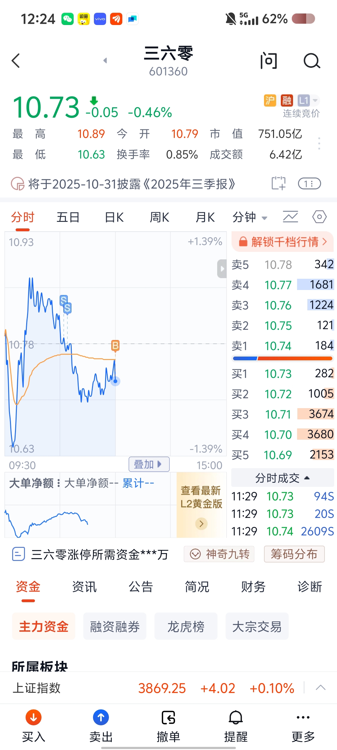 $三六零(SH601360)$ 怕卖飞,差点做个倒t,谁懂啊