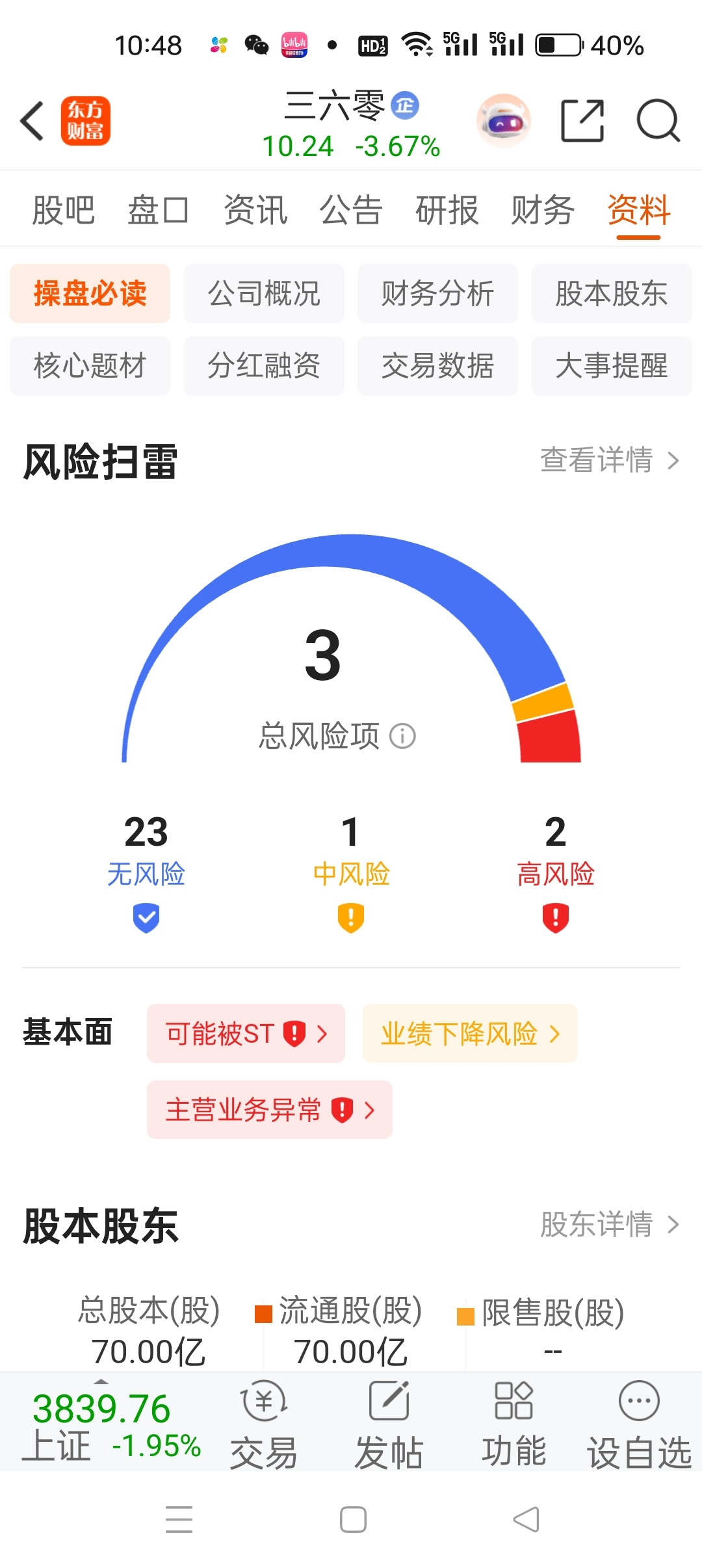 $三六零(SH601360)$ 我c 怎么有ST风险!吓唬人的吧?