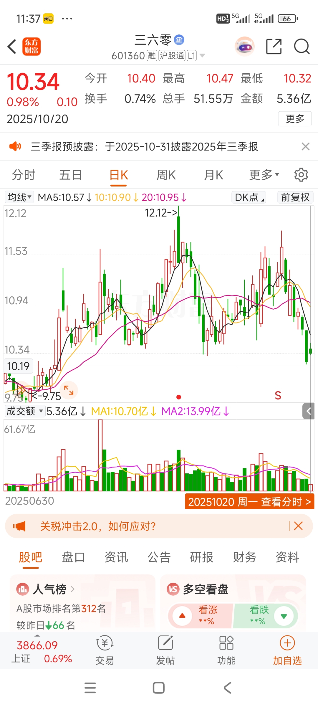 $三六零(SH601360)$ 今天挂10.19准备再买点。