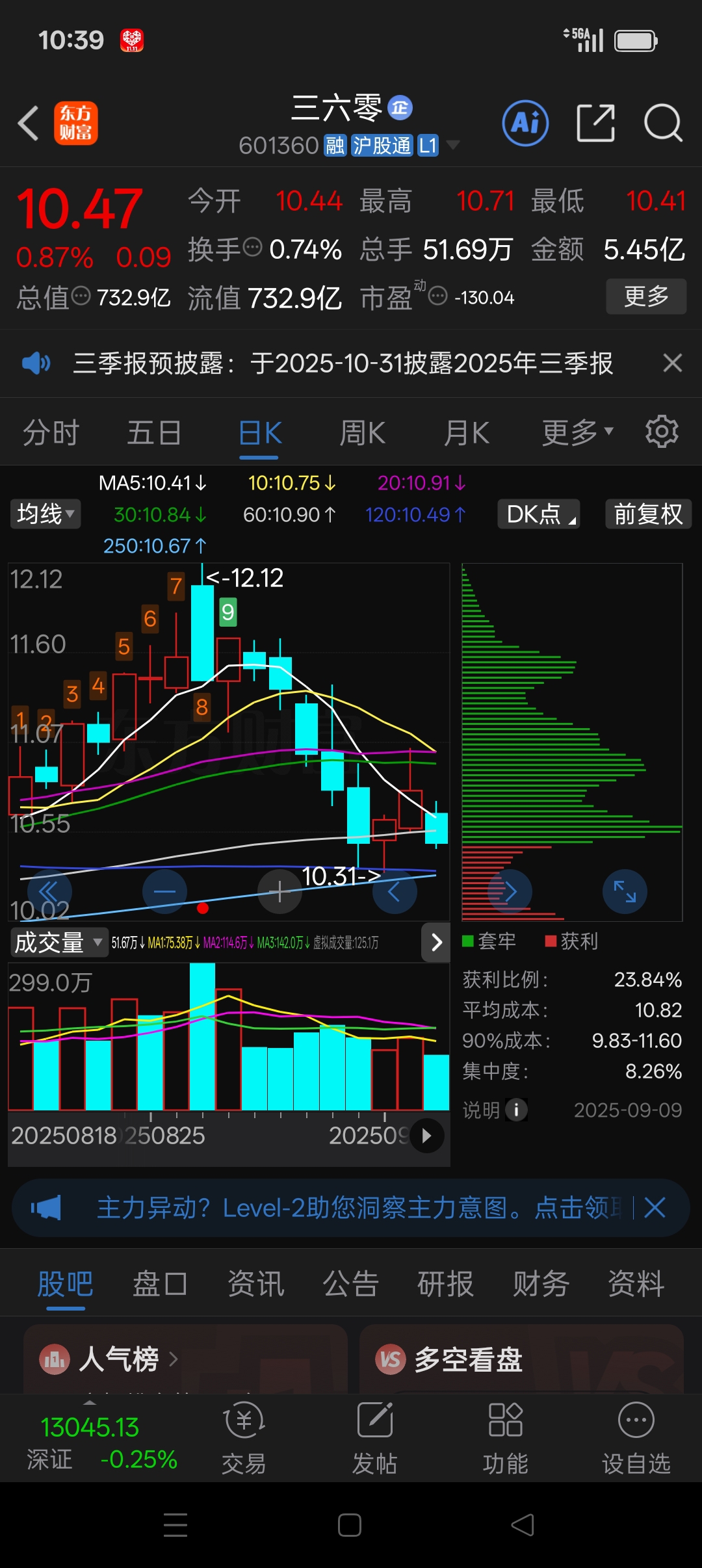 $三六零(SH601360)$ 今天变绿或者复制9月9日走势