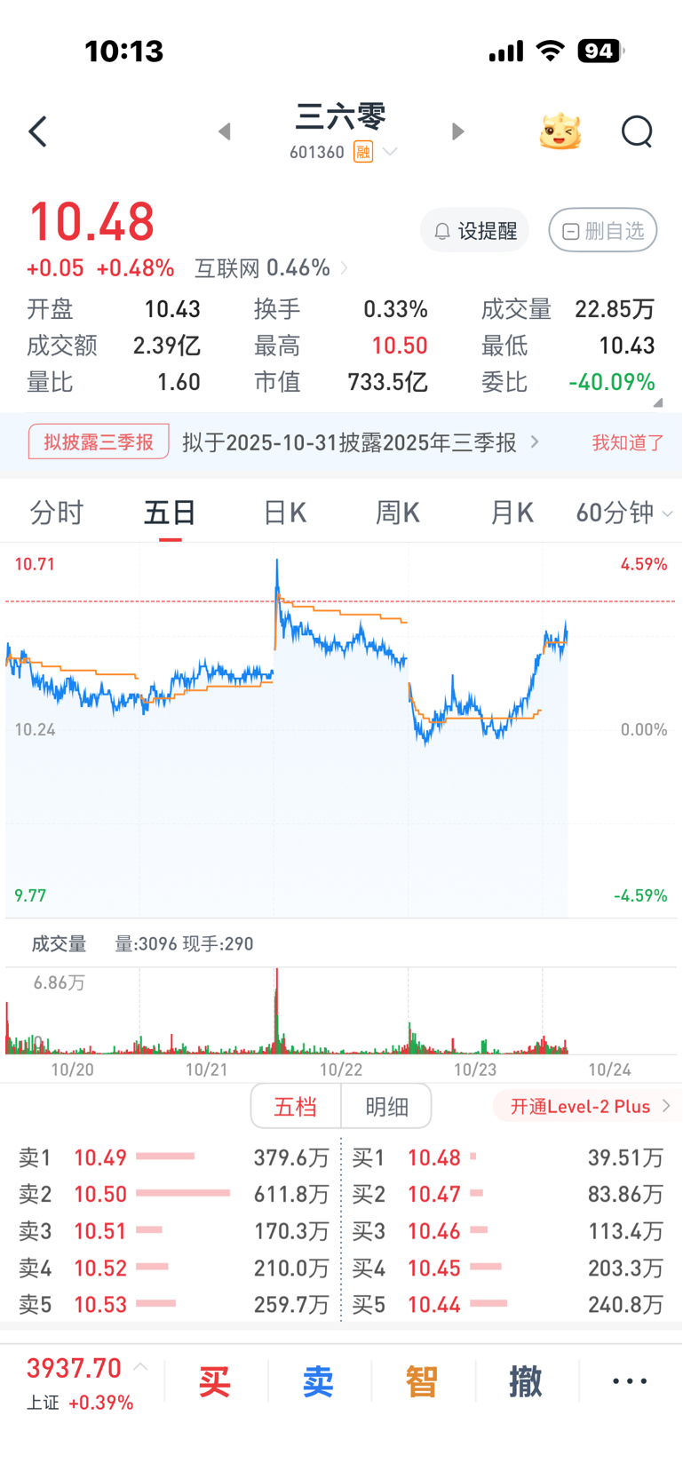 $三六零(SH601360)$ 差8分钱回本