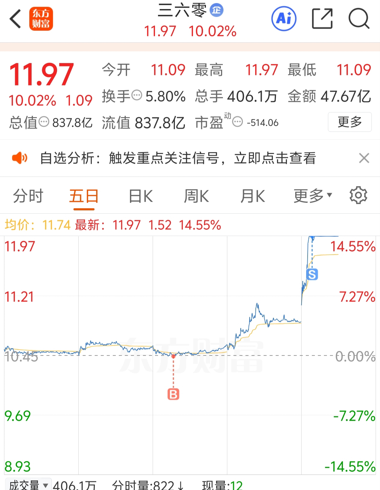 $三六零(SH601360)$ 落袋为安,谢谢主力。