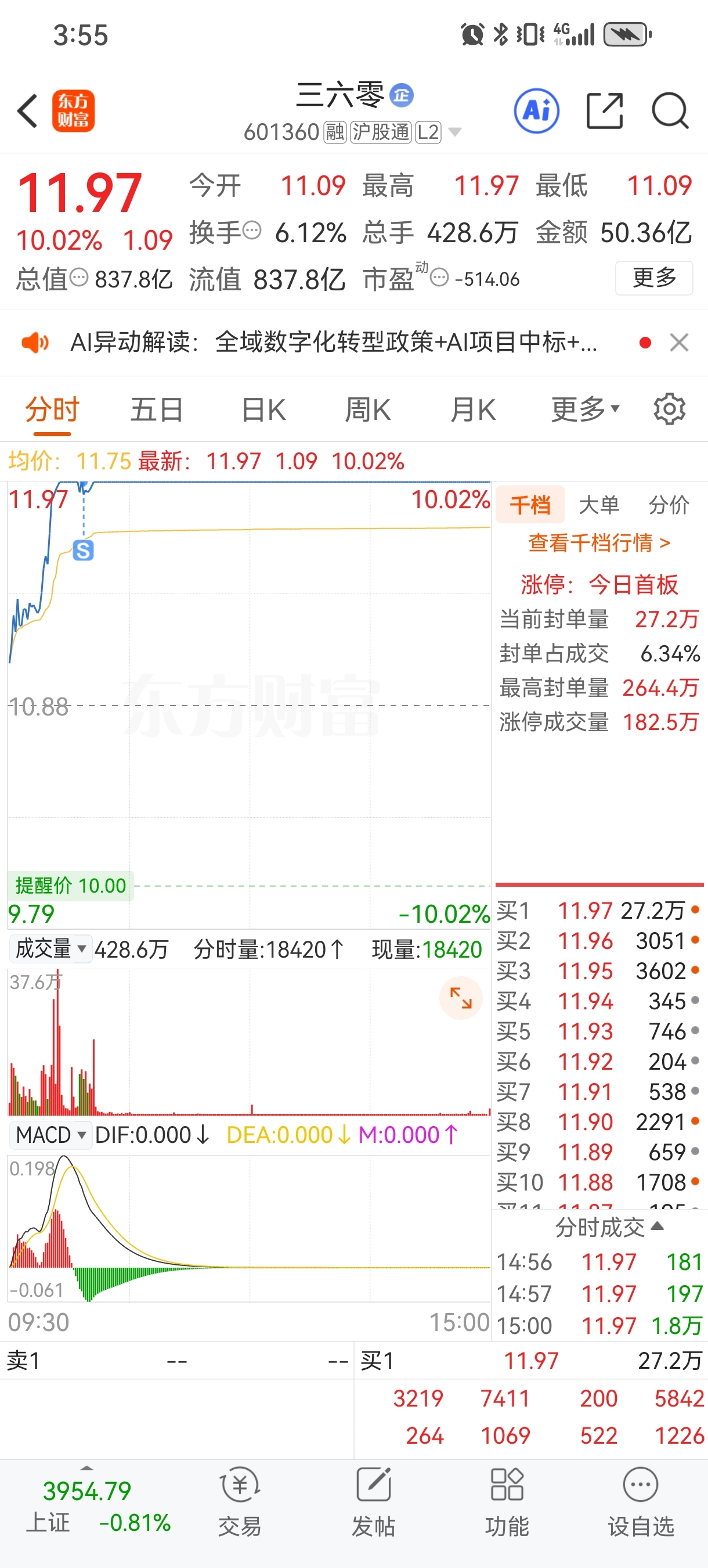 $三六零(SH601360)$ 把我洗走了,下周一最起码高开两个点吧