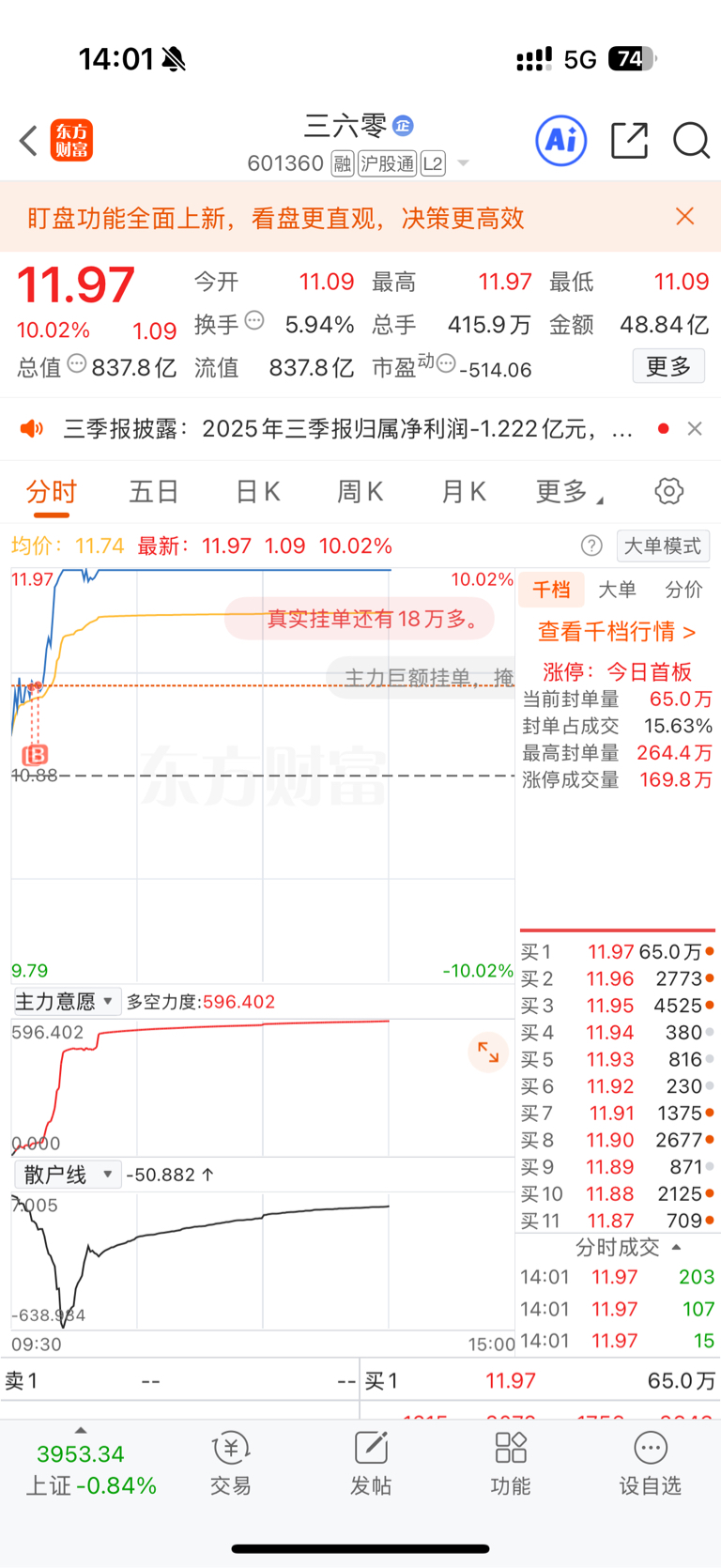 $三六零(SH601360)$ 今日我与新一还有桑田路两大游资助力360强势封板。下周一请看我们的表现。