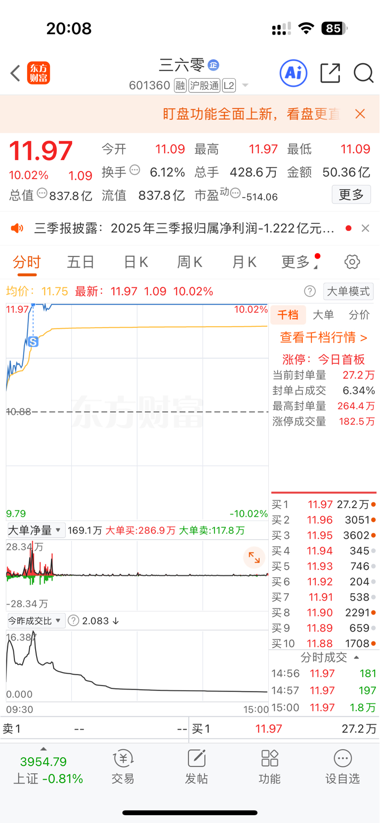 $三六零(SH601360)$ 挂涨停出掉了,下周一肯定大幅度低开
