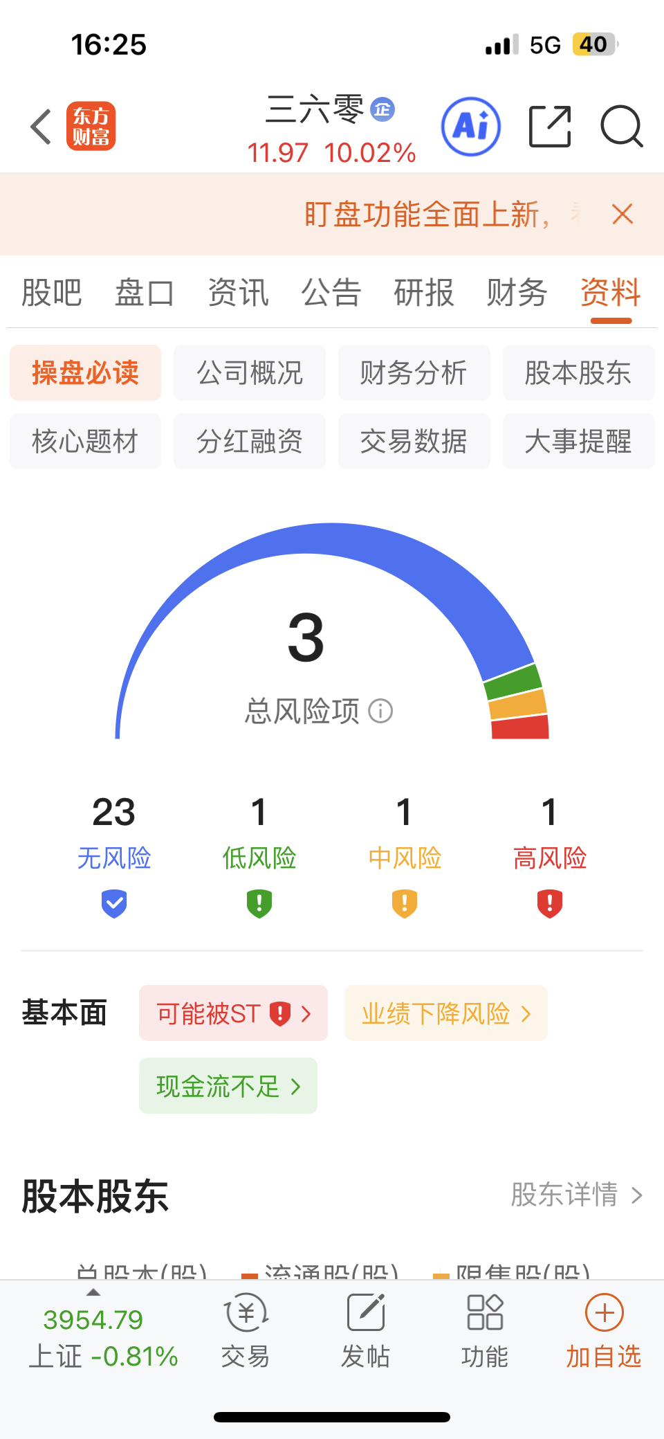 $三六零(SH601360)$ 可能被st散户别来抬轿子