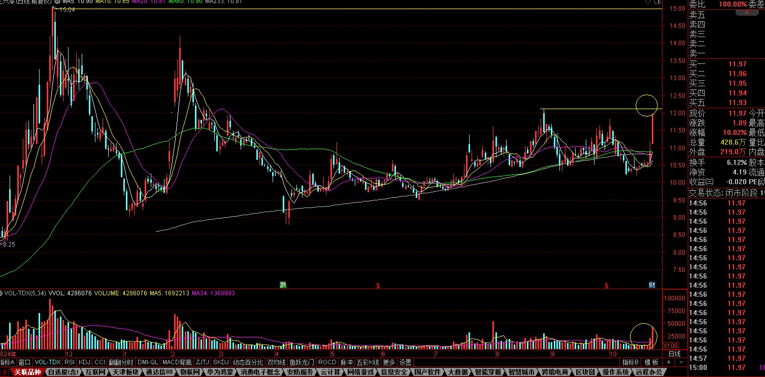 三六零,周线下降通道要突破了!周五爆量拉涨停板,显示主力做多的意愿,下周突破八月份的小平台没有悬念了。就看11月份能否酝酿突破去年12月份的那个重要高点了。你们说,有机会吗?
