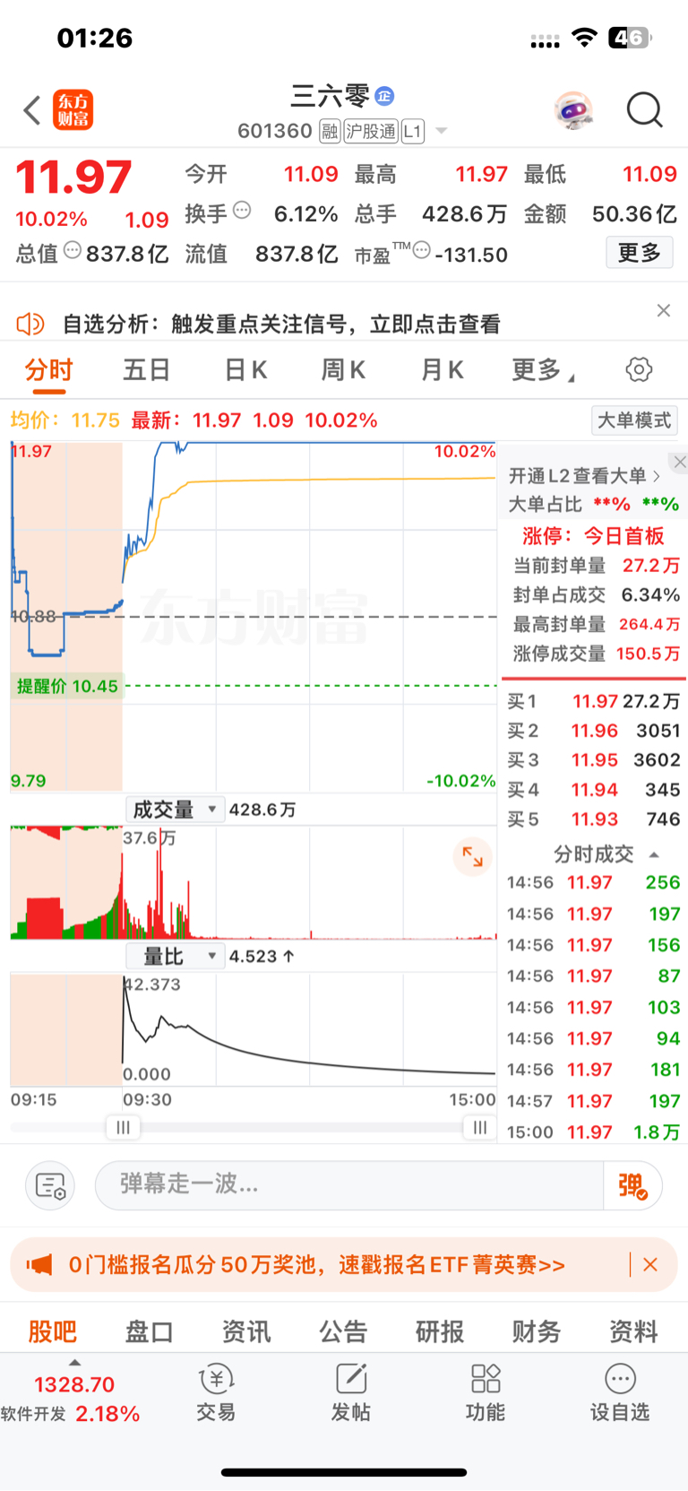 $三六零(SH601360)$
