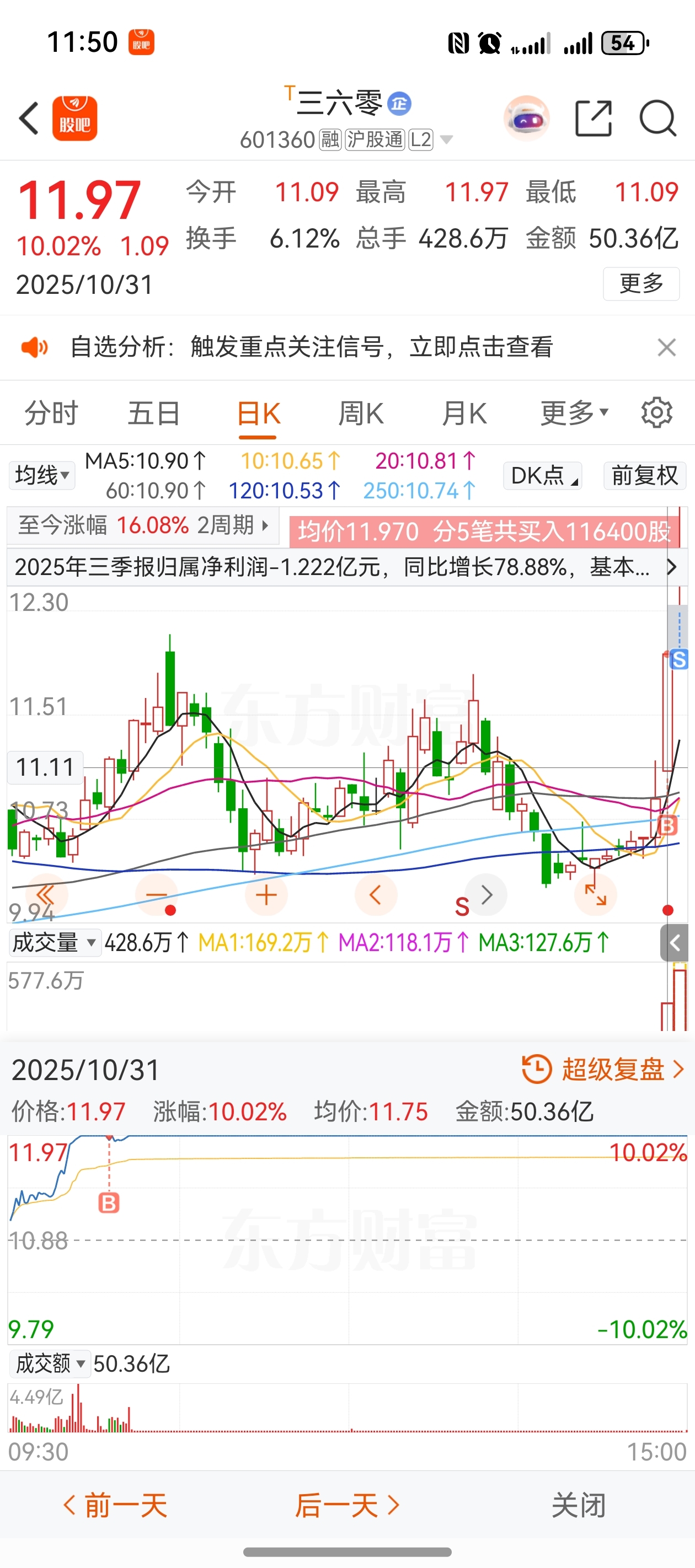 上周五板上拿的,早盘放量换手,第一次冲高回落出局,题材很好,位置、量能也不错,可