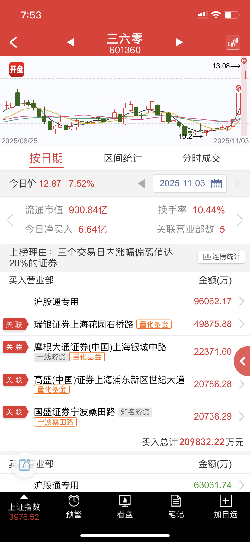 $三六零(SH601360)$ 沪股通做t,桑田路加仓+三个量化