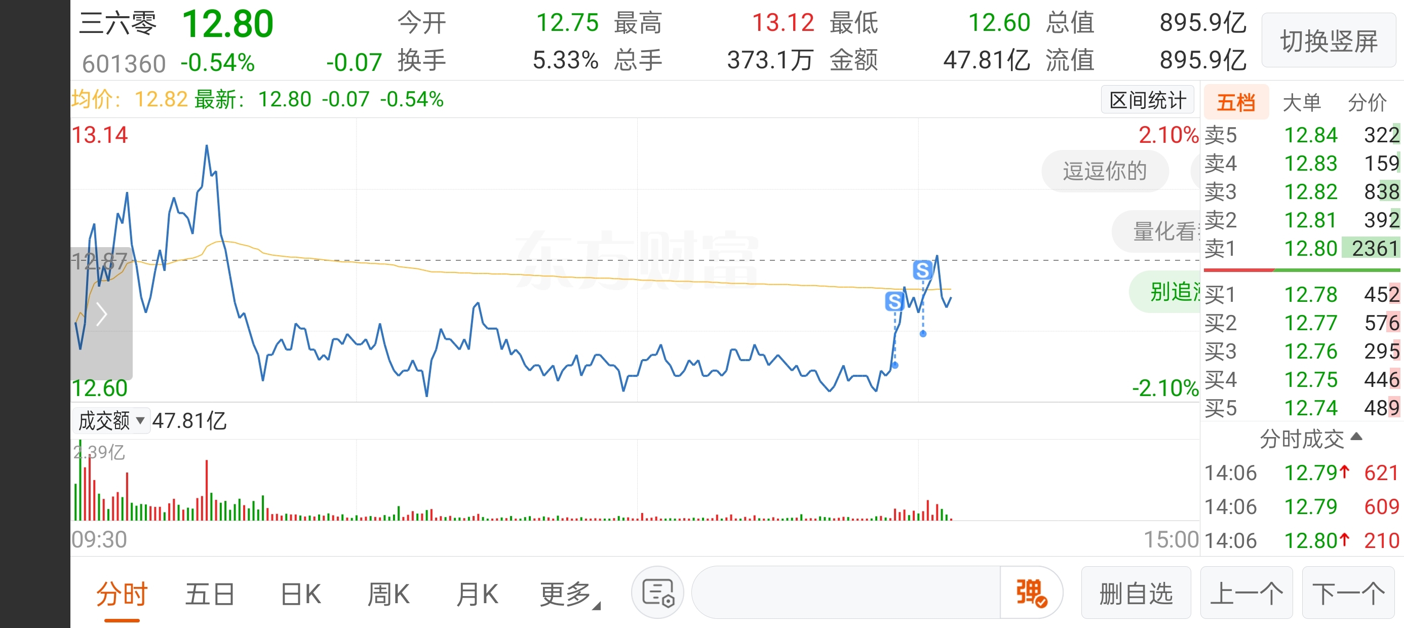 $三六零(SH601360)$ 你们得谢谢我,我给他卖了,懂吧?