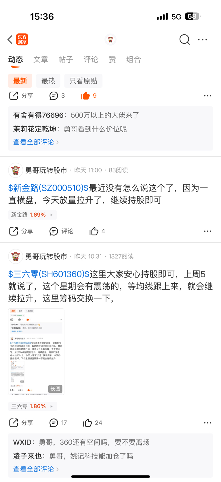 $三六零(SH601360)$ 今天估计洗了很多人出去 在行情刚启动的时候,很多人解套了,就会赶紧卖出,不然怕又跌回去了,这就是人性,但是回过头来看都卖在了底部,一旦卖出了就没有勇气在接回了 分时的波动,你的情绪也在波动,没有标准的交易 注定不会长久 继续持股 做难熬的日子已经过去,接下来就是上涨趋势,无视任何的调整,耐心持股,我之前就说过,等到明年7月份360到30以上,已经没有人会在了