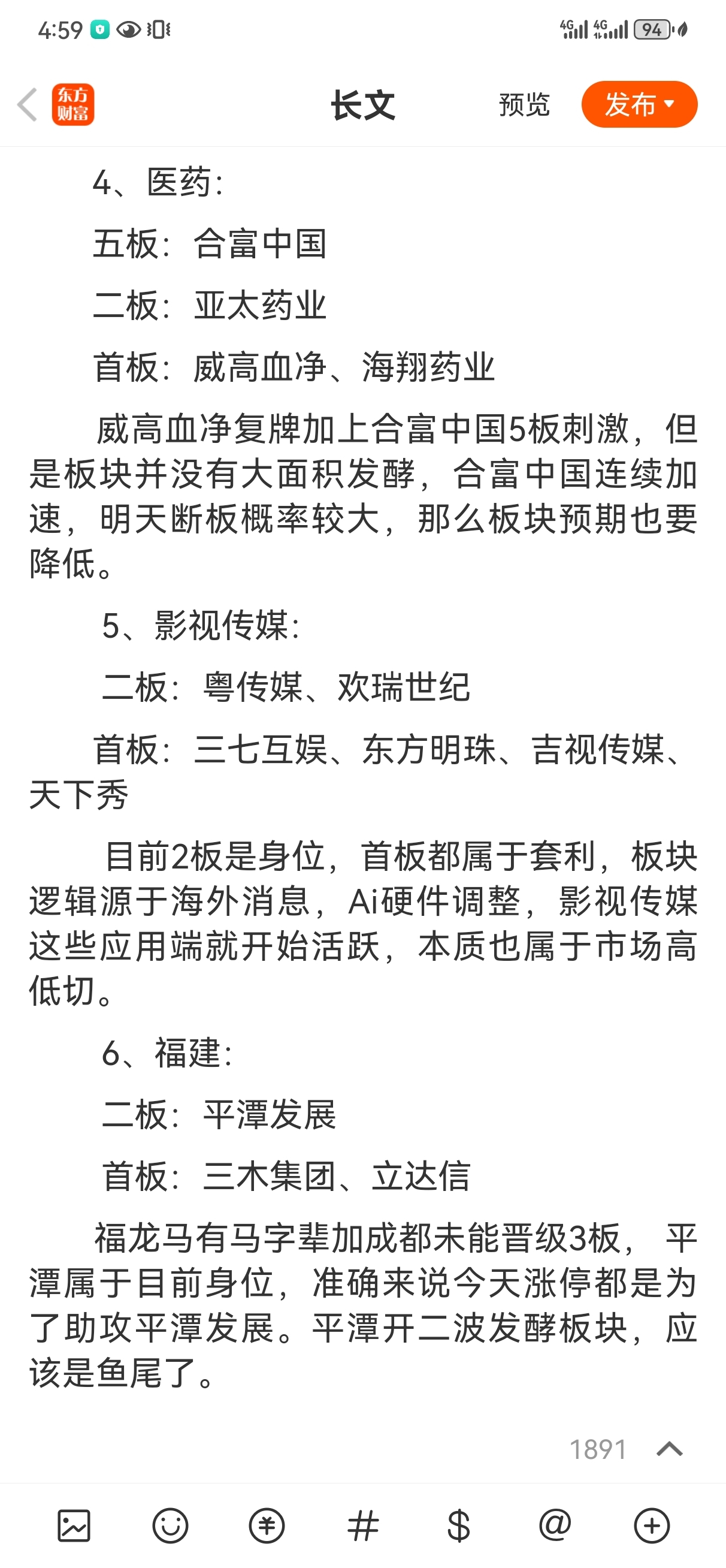 3、无抱团,短线赚钱效应主要来源于题材跟抱团,加上历来这个月就是炒作妖股,而当前市场并没有高度,那么也就不存在什么抱团妖股。像福龙马这些2进3都封不住,一旦做错就是大面。