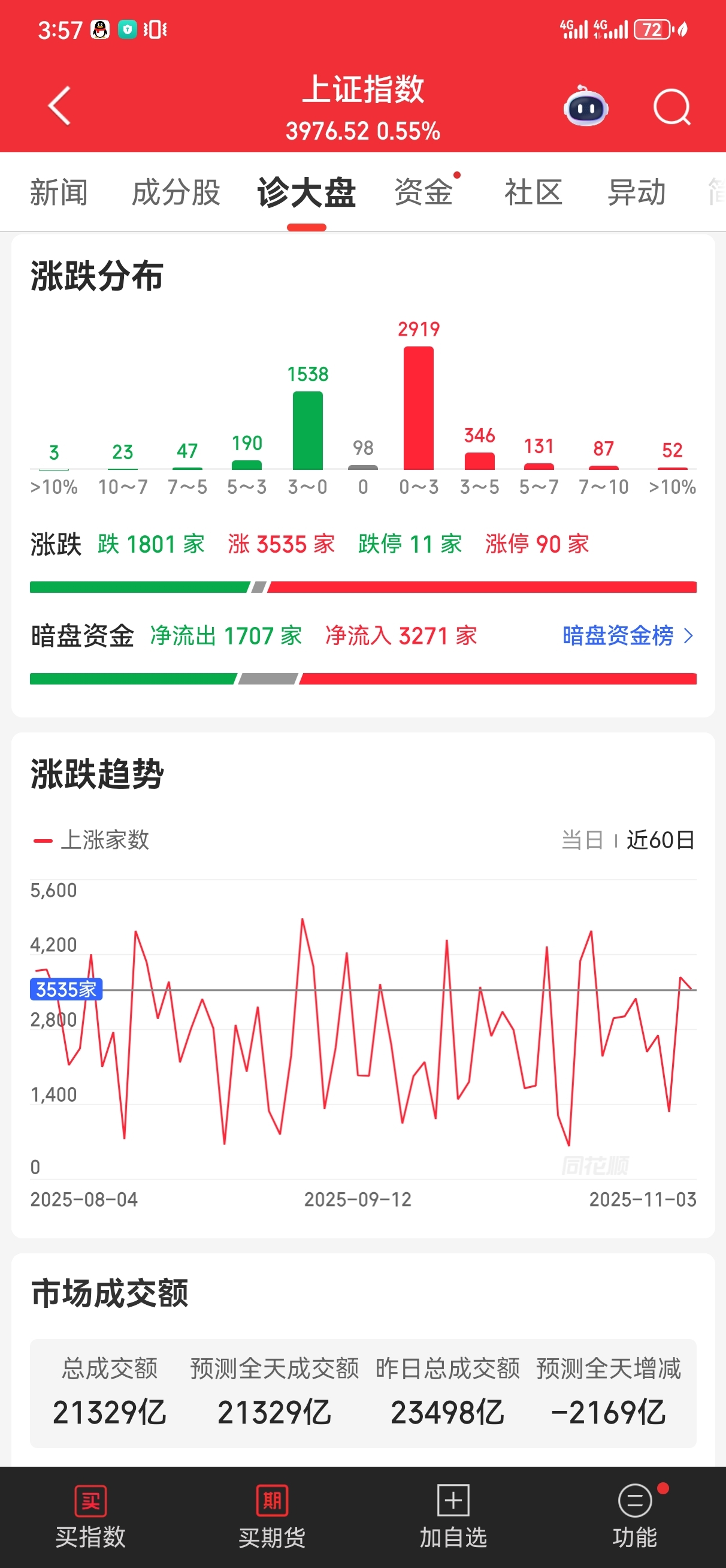 目前市场高度5板,但是二进三、三进四全部断板,有种推到重来的意思。每年11月份都是炒作妖股阶段,机构在年底都会降低活跃度,所以成交量大幅萎靡,后面估计会常态化维持在2万亿附近。