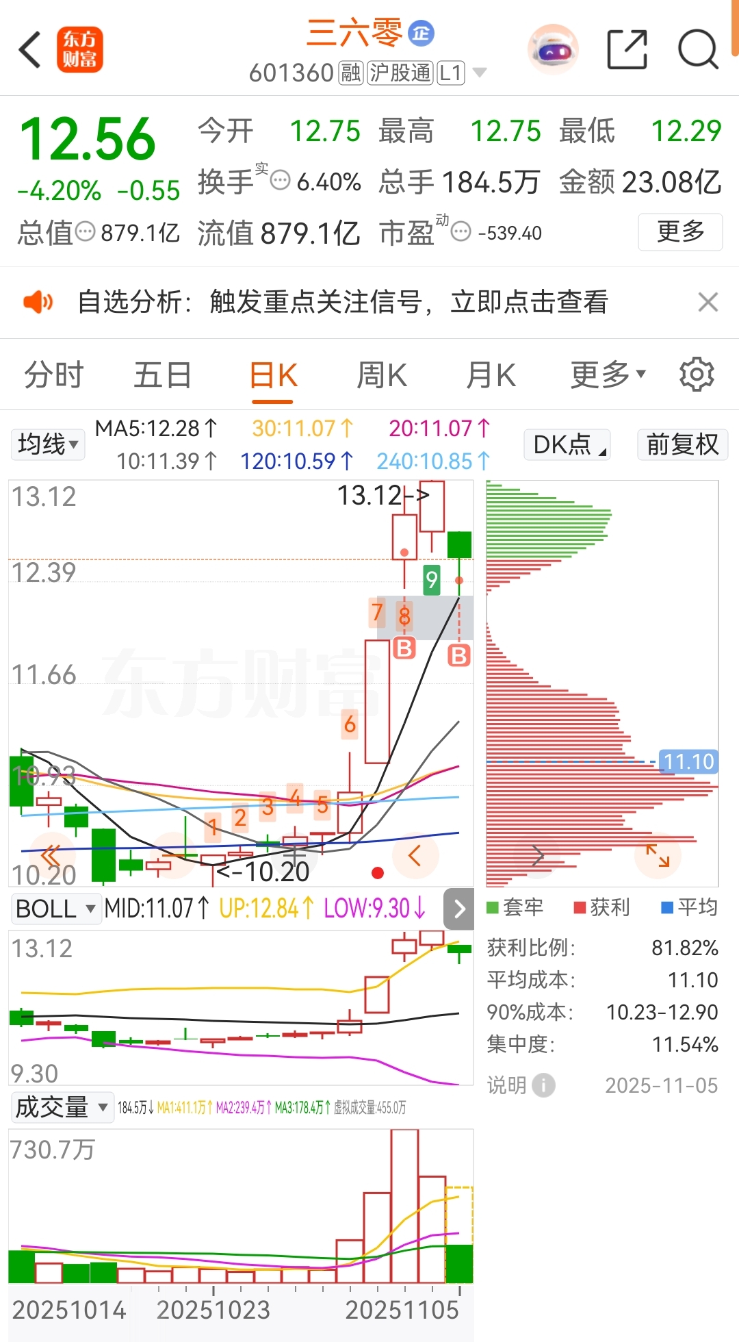 继续加仓三六零,这么典型的洗盘看不出来,老周,俺支持你