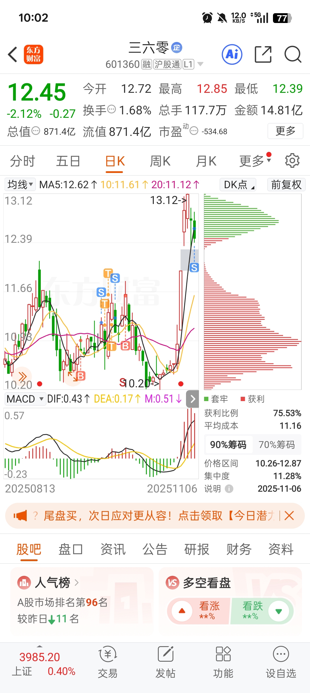 $三六零(SH601360)$ 先清仓了,换股再找机会