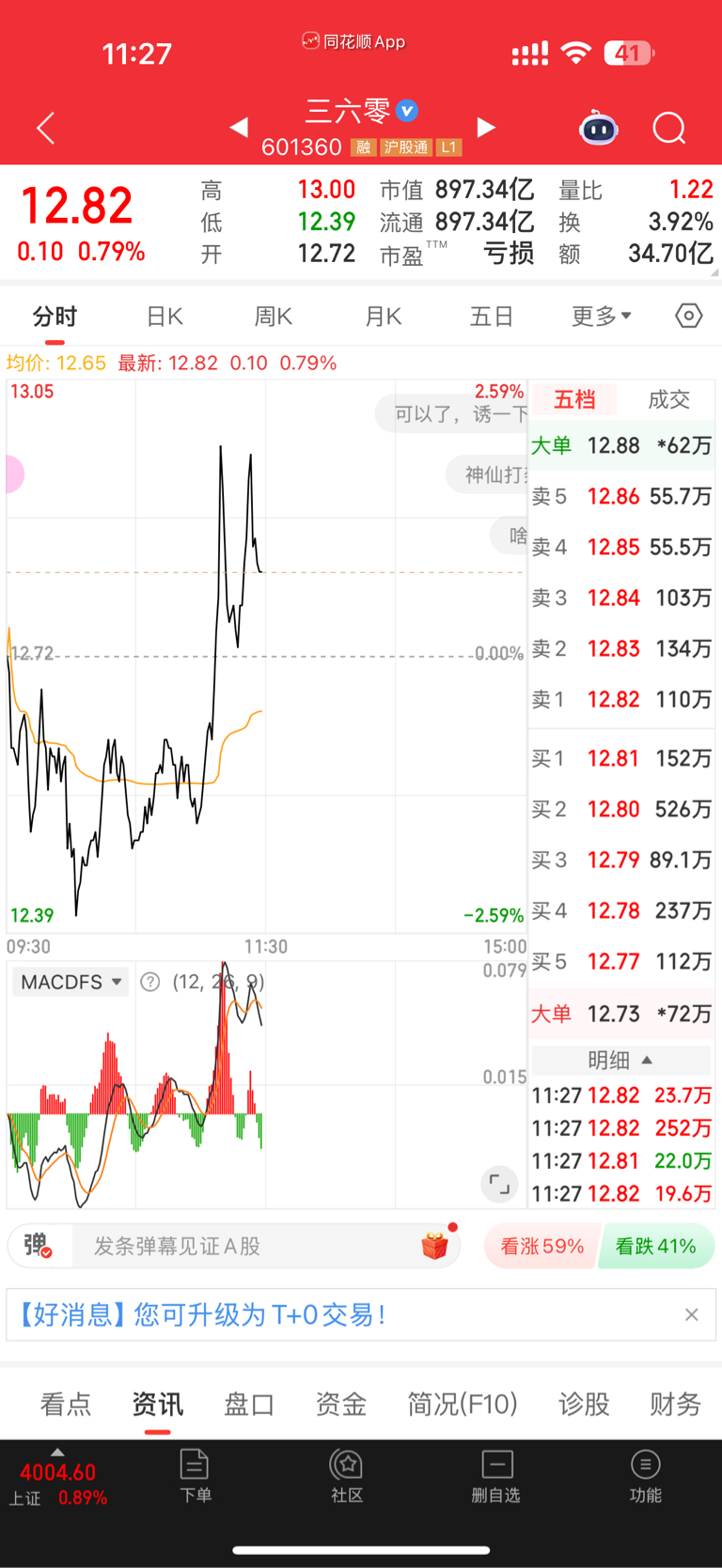 $三六零(SH601360)$ 主力试探,的意思就是他一拉咱们就出,