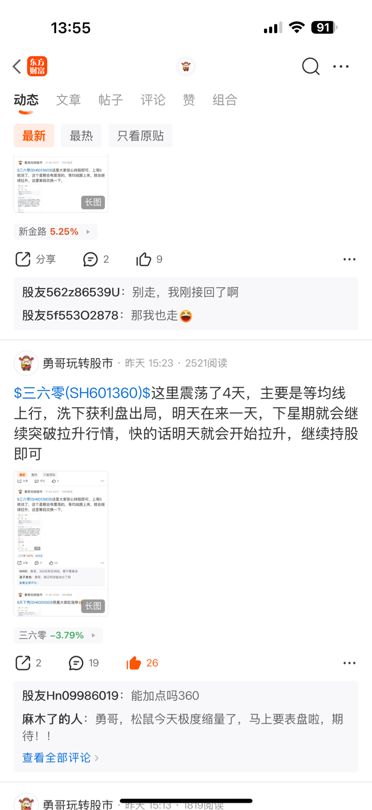 $三六零(SH601360)$ 昨天说了,今天可能会继续洗一天,那今天洗完,下个星期那就继续看涨了,今天估计很多人会卖出了,仓位轻的今天这里是个不错的买点,继续持股不动,这个星期就是以震荡为主的