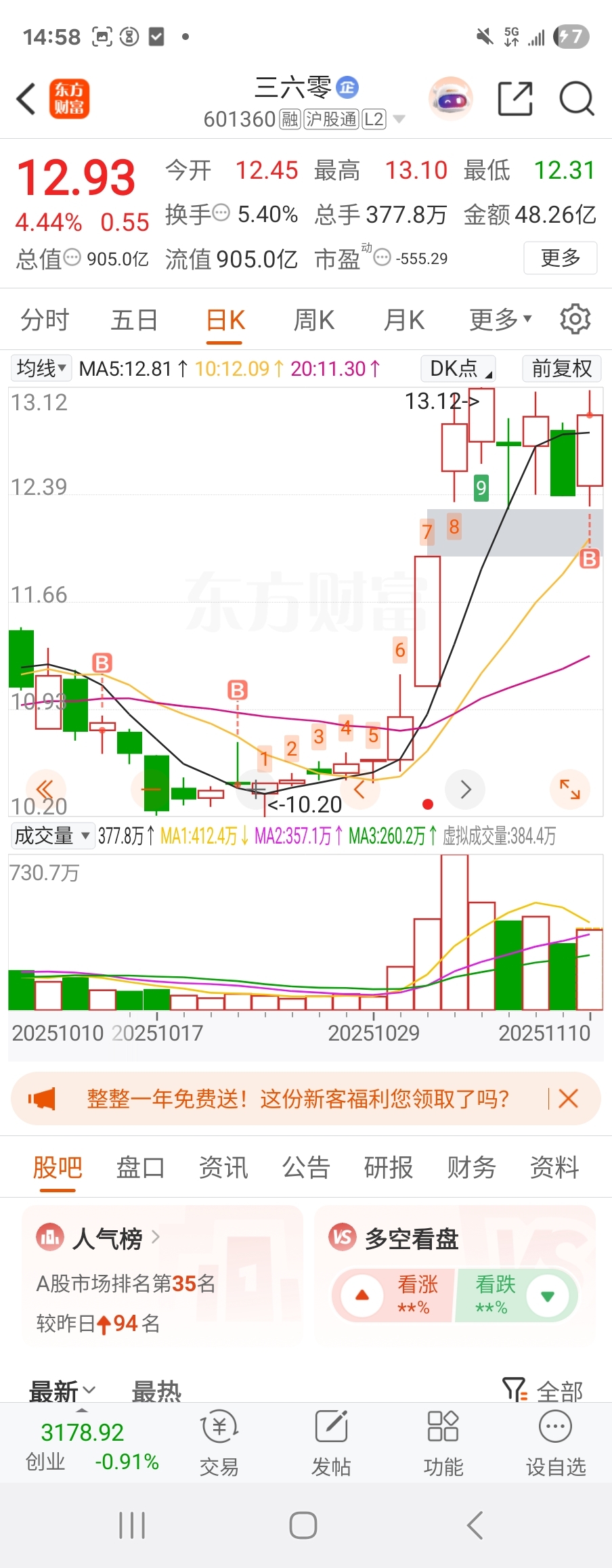 $三六零(SH601360)$ 高开也行,低开的话就再买点做t