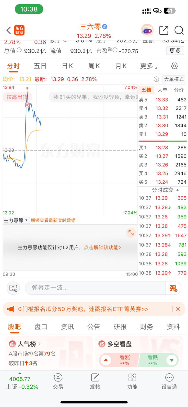 $三六零(SH601360)$ 山顶风景好美,兄弟们救我