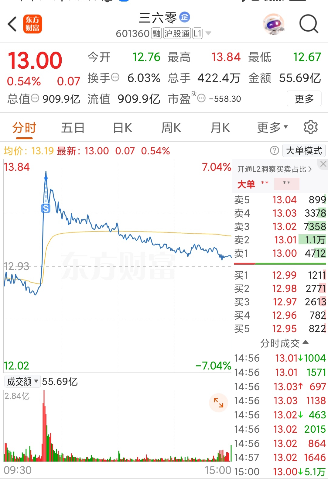 $三六零(SH601360)$ 明天12.70附近再见
