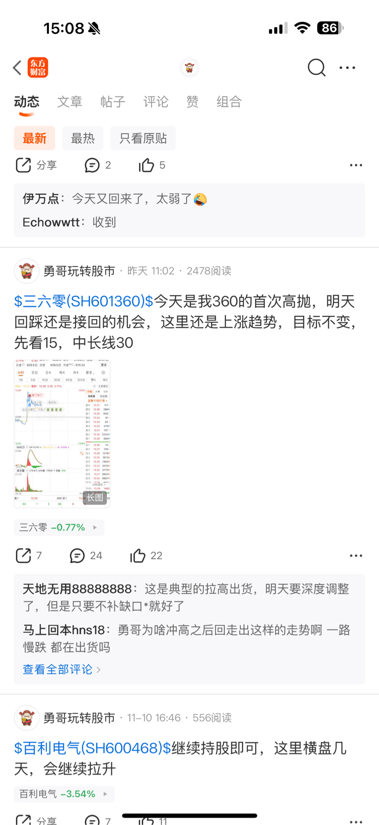 $三六零(SH601360)$ 今天的下杀空间不大,收盘还是5日线上方,5日线之上不看空,明天10日线跟上了,按这种走势的话,那2浪小调整估计没有了,就是以横盘震荡来做2浪的调整,今天的量能缩量 那大概率明天又是一根阳线,什么时候突破并站13.12就开始3浪的行情,目标就是15左右 昨天高抛的 尾盘接回