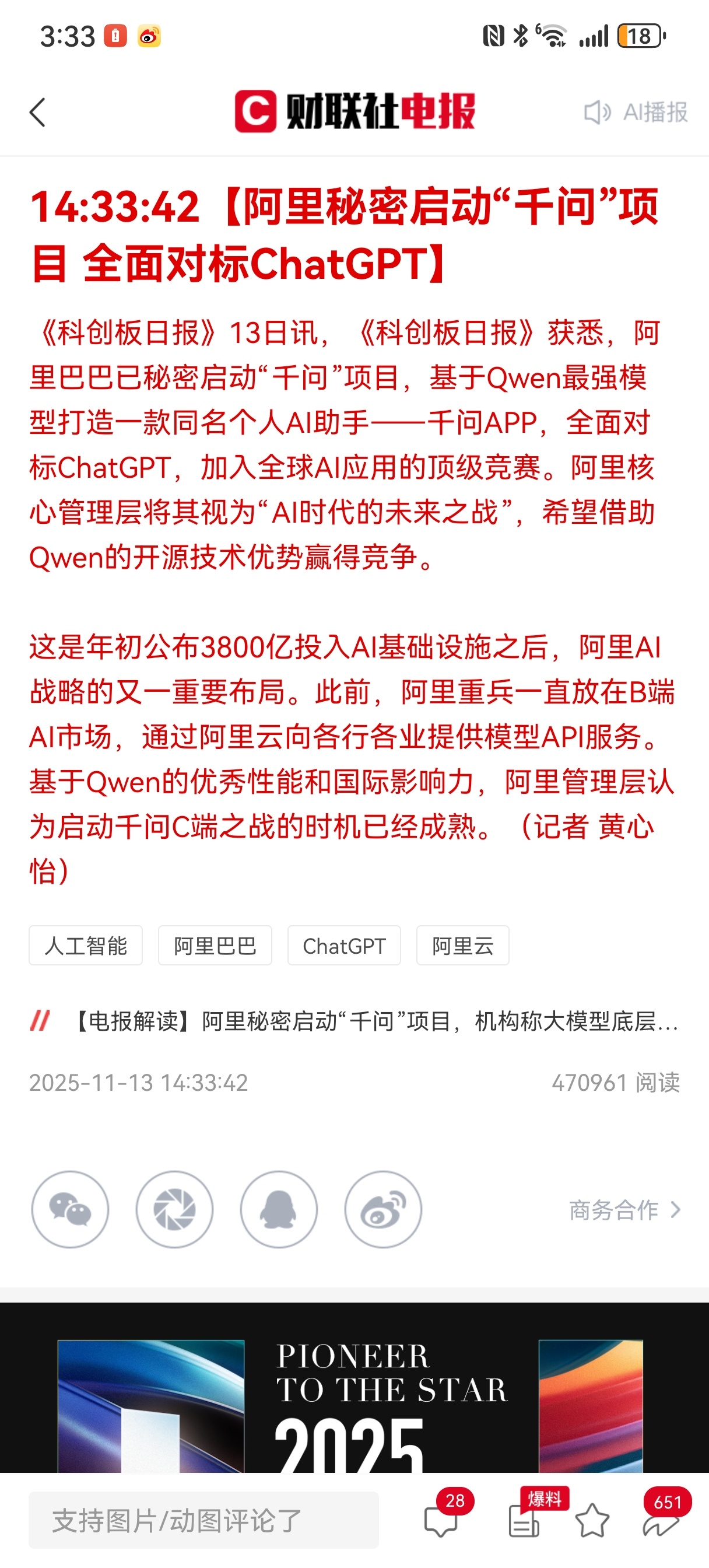 $三六零(SH601360)$ 王炸来了,阿里没有在国内上市,明天360要抢了。