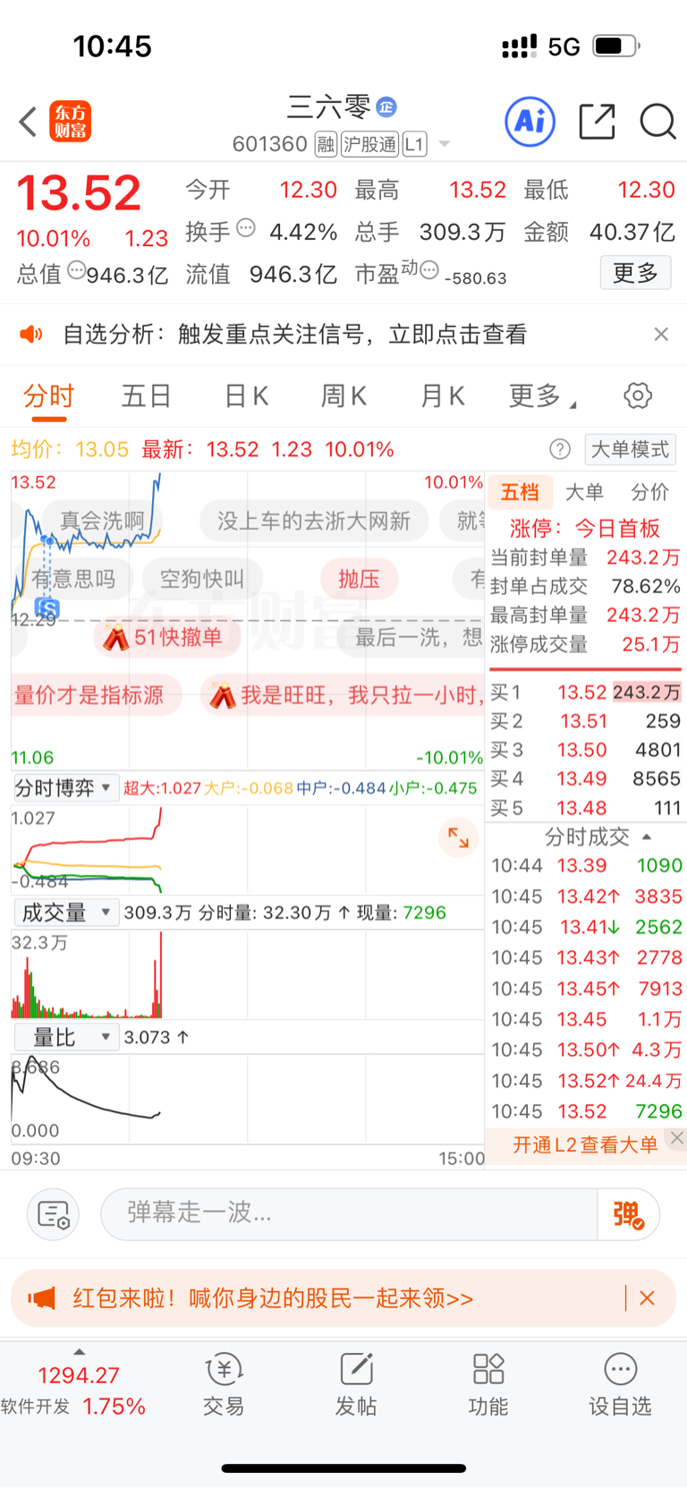 $三六零(SH601360)$ 愿赌服输,拿了一年多了,不陪你了,愿你一飞冲天!