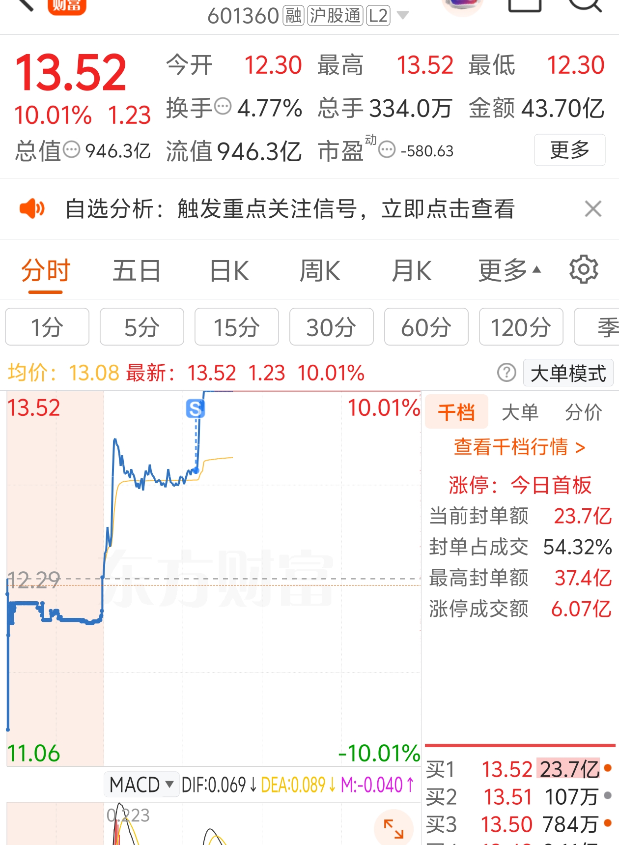 $三六零(SH601360)$ 这样好吗,卡着点等我
